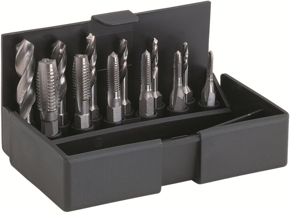VÖLKEL-Threading-Bits have been designed for thread cutting using battery-powered screwdriver drills and electric hand drills with right-hand and left-hand rotation. But they are also suitable for thread cutting by hand or in a stationary drilling machine. Your battery-powered screwdriver drill should have a minimum power of 7.5 Volts. Take care that the tool and the axis of the hole are exactly aligned and use a suitable cutting oil. Contents: 1x HexTap S Tap bit, HSS-G, M 3 VÖLKEL 67026, 1x HexTap S Tap bit, HSS-G, M 4 VÖLKEL 67030, 1x HexTap S Tap bit, HSS-G, M 5 VÖLKEL 67034, 1x HexTap S Tap bit, HSS-G, M 6 VÖLKEL 67038, 1x HexTap S Tap bit, HSS-G, M 8 VÖLKEL 67042, 1x HexTap S Tap bit, HSS-G, M 10 VÖLKEL 67046.